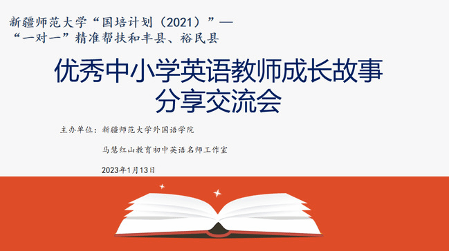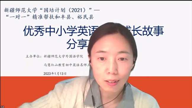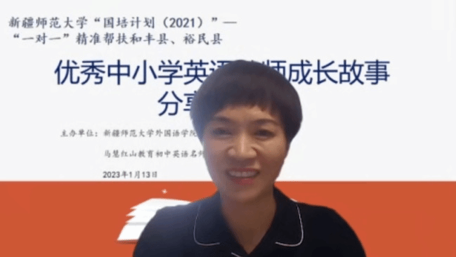 1月13日下午,永利官网“国培计划(2021)”——“一对一”精准帮扶新疆塔城和丰县、裕民县之优秀中小学英语教师成长故事分享交流会通过腾讯会议在线上举行。此次活动由永利官网外国语学院和马慧红山教育初中英语名师工作室共同举办。来自塔城和丰县、裕民县小学英语、初中英语工作坊骨干教师,马慧红山教育初中英语名师工作室成员以及永利官网外国语学院英语专业师范生参加活动。