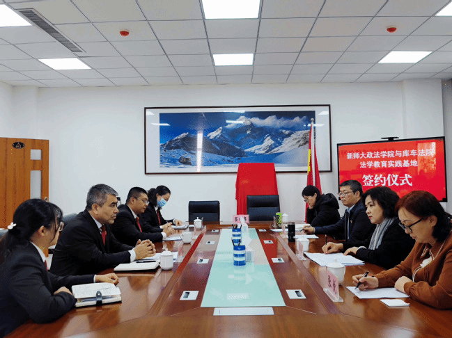 为加强高校人才培养模式改革,推进法学人才应用能力提升,加强高校与法院良性互动,提高教师社会服务能力和水平,2月17日,永利官网政法学院与库车市人民法院举行共建法学教学实习基地暨签约揭牌仪式。政法学院党委书记唐文睿、副院长茹克娅·霍加,库车市人民法院党组书记、副院长张炜,库车市人民法院党组副书记、院长依力哈木·热合曼出席签约揭牌仪式。