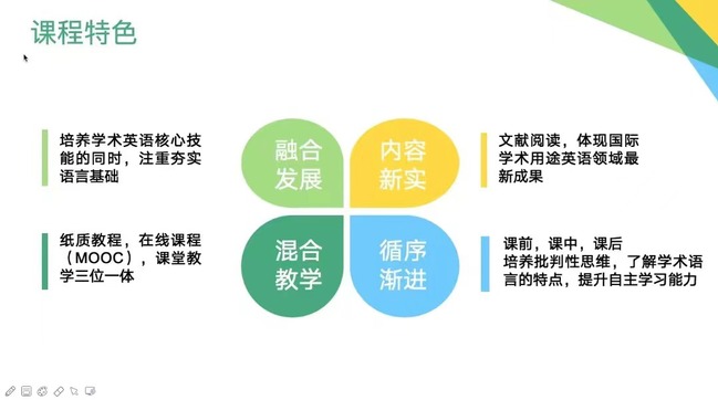 8月3日的“学生中心 产出导向”大学英语教改项目推进会上,自治区级一流课程《大学英语》负责人胡燕花副教授从课程内容体系、教学模式、课程评价方式、课程资源、师资团队等方面汇报课程建设思路、阶段性成效及未来建设计划;通识选修课程《通用学术英语》、《英语考试测试与训练》授课教师木丽迪尔·赛尔建、陈川、李英分别介绍课程实施情况。