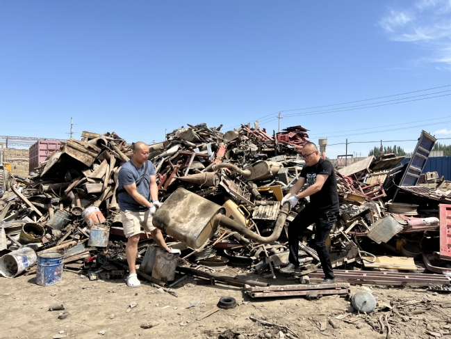 两位教师前往废品收购站为作品选取材料