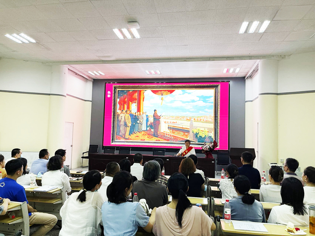 6月27日下午,美术学院党委组织全院教师党员开展“弘扬伟大建党精神,争做新时代好教师”主题党日活动,教师第二党支部即将退休老党员王凡为全体党员讲授微党课“美术经典中的党史—开国大典”,带领大家一起回忆中华人民共和国成立这一载入历史史册的重要事件。作为一名美术教育理论工作者,王凡希望全体党员教师要在艺术创作过程中,不断凝聚、提炼中国元素和中国特色文化符号,画好中国故事。