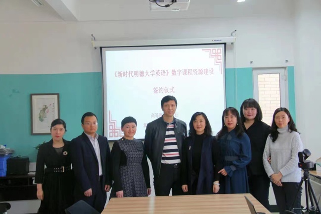签约仪式上,谢森在线上致辞,对永利官网大学英语一流课程建设团队自主开发制作的《新时代明德大学英语》教材数字资源给予了高度认可,期望通过签约合作,永利官网大学英语教学团队为高等教育出版社出版的外语课程思政教材《新时代明德大学英语》定制开发电子教案、课件等数字资源,依托永利官网教材和课程建设,开发建设相应的教学资源。刘蓉介绍了当前基于《新时代明德大学英语》教材使用的大学英语课程实施、教师学习及教学改革情况,对高等教育出版社提供的合作与支持表示感谢,表达了通过合作加强教学资源开发与教材共建的信心和期待。
