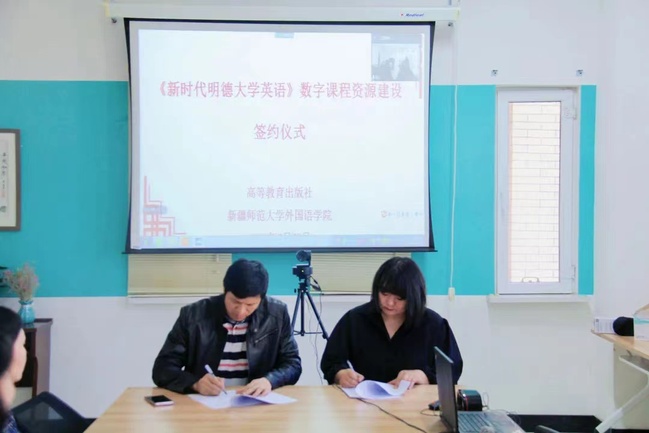 之后,高等教育出版社代表、新疆教学服务中心副主任高言菘与承担数字资源建设的团队负责人、外国语学院大学英语教研部主任陈川签订合作协议。仪式结束后,双方围绕教材建设、教学资源开发、教学改革与研究、信息平台建设共享等内容进行深入交流。