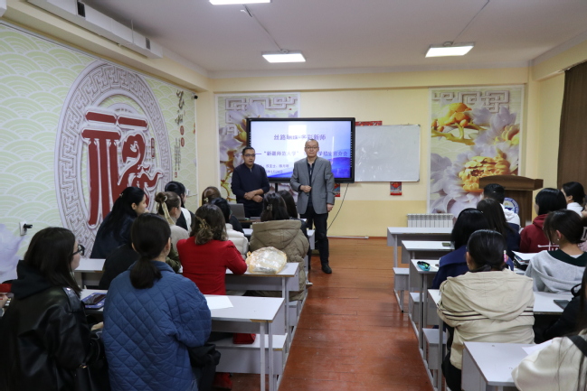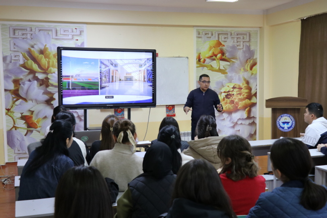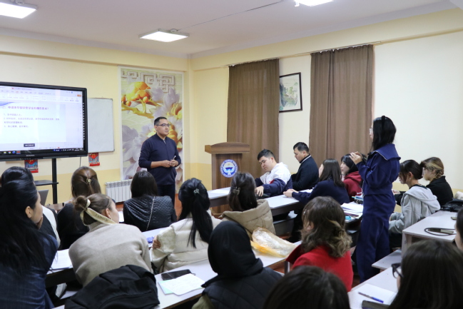 奥什国立大学孔子学院中方院长安德源为当地学生介绍了yl6809永利官网留学生教育的发展历史和特色,并诚挚邀请同学们报考yl6809永利官网,亲身体验中国新疆的风土人情。