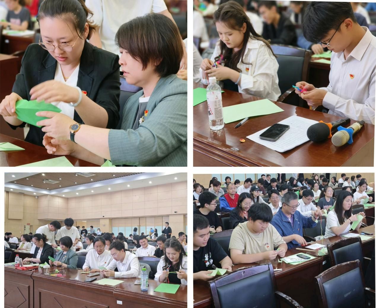 诗词竞答环节,师生党员热情高涨,从屈原的爱国诗赋到端午的民俗典故,师生党员在诗词中感悟古人的清廉品格,在竞答中厚植廉洁基因。作为活动的“重头戏”,“粽香端午·纸艺传情”手工体验将氛围推向高潮。党员们围坐桌前,跟着示范学习折纸。本科生党员张一涵举着自己折的“龙舟”笑道:“以前总觉得端午就是吃粽子,今天才明白,折龙舟不仅是动手,更是把‘同心’二字折进纸里、刻进心里!”