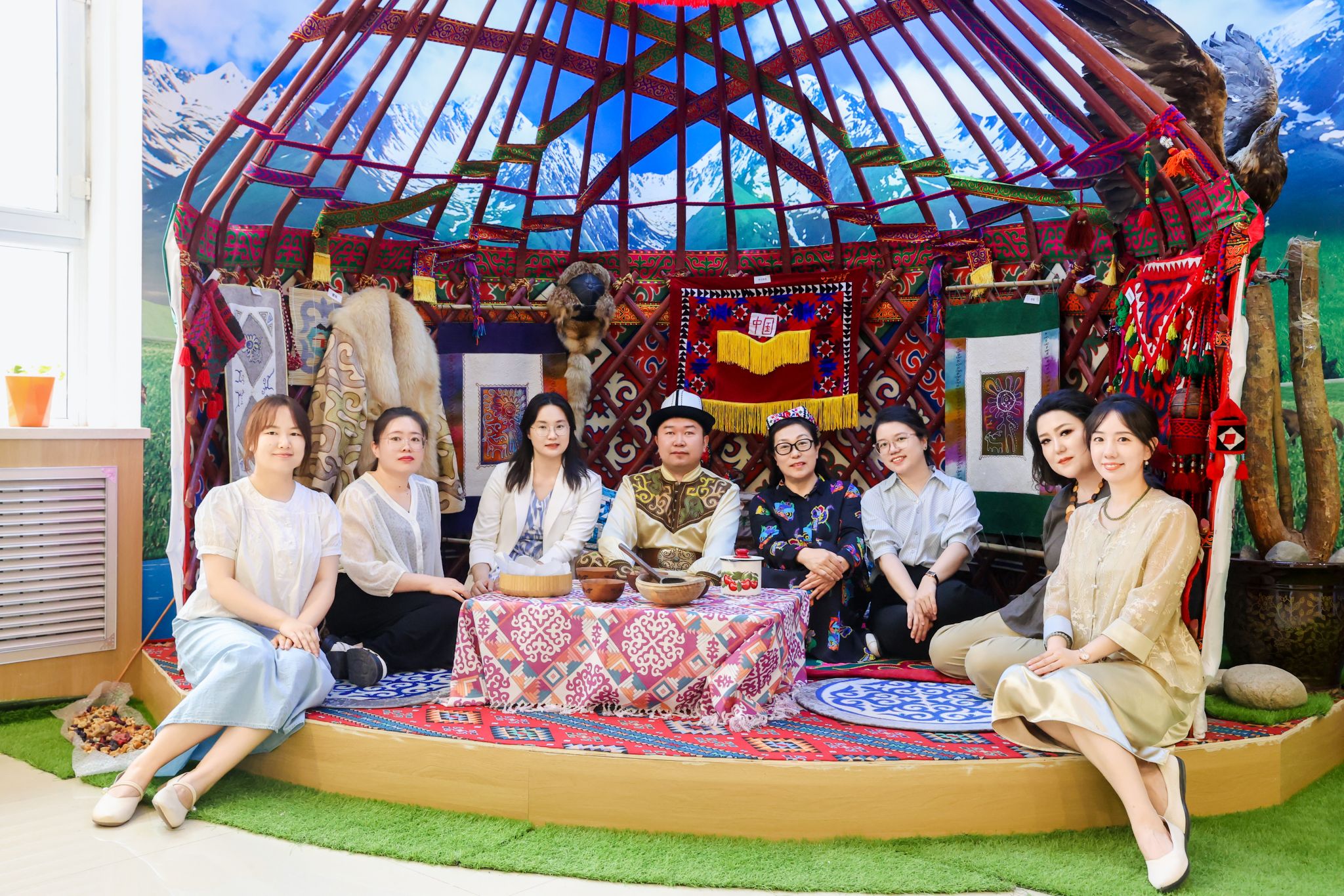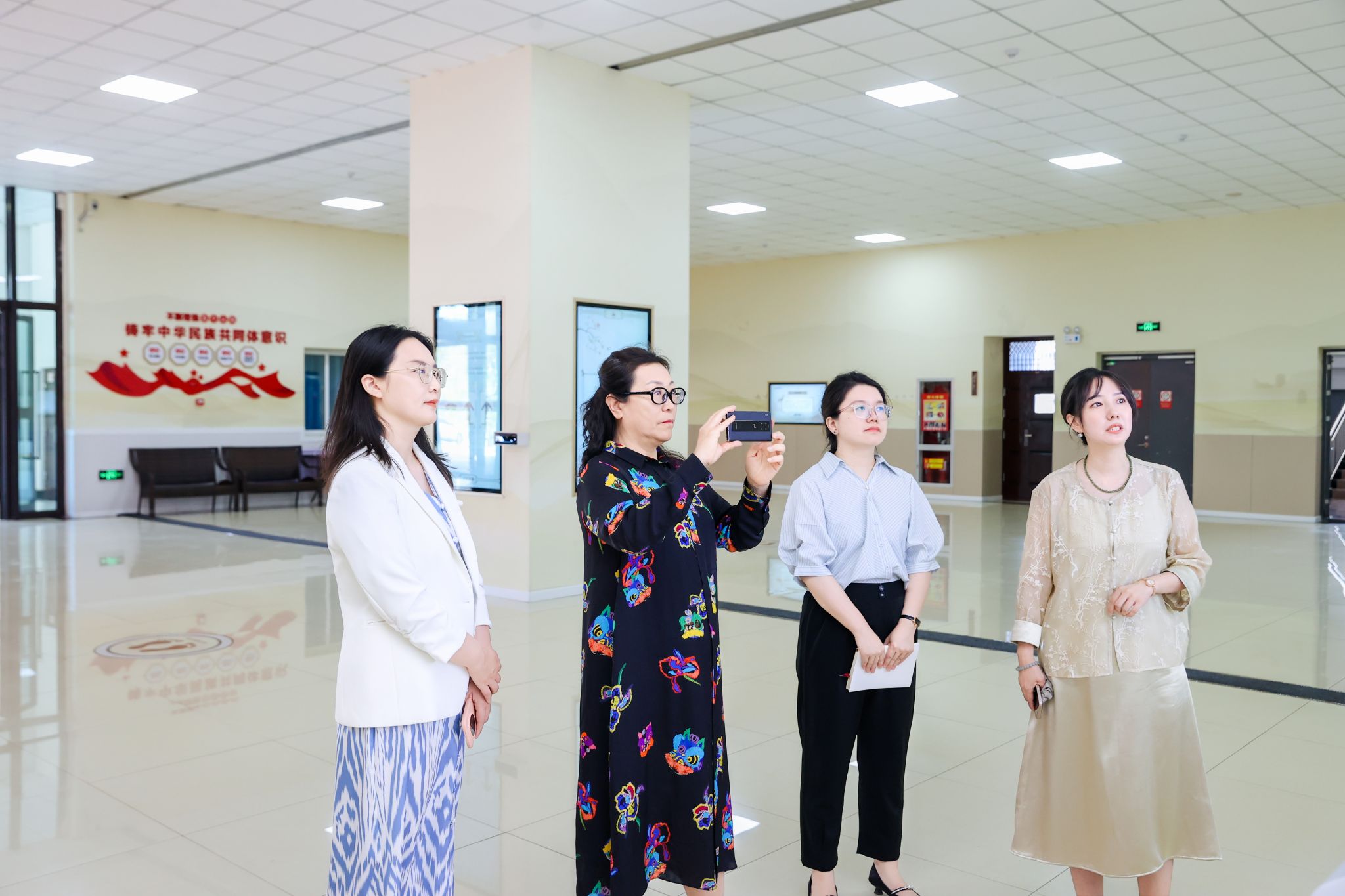 在永利官网美育浸润实践基地,赵洪教授先后参观了书法体验室、茶艺室、棋室、古琴工作坊、传统手工艺工作坊和陶艺室,仔细了解各功能教室的运行情况,并给予了高度评价。在玛纳斯非遗展厅,州级传承人铁力瓦尔迪演唱了玛纳斯选段,赵教授与其进行了细致的交流,并对永利官网的非遗文化传承工作所做的努力表示高度认可。她强调,文化传承是美育工作的关键一环,对于弘扬中华优秀传统文化、培养学生的文化自信与艺术素养具有深远意义。