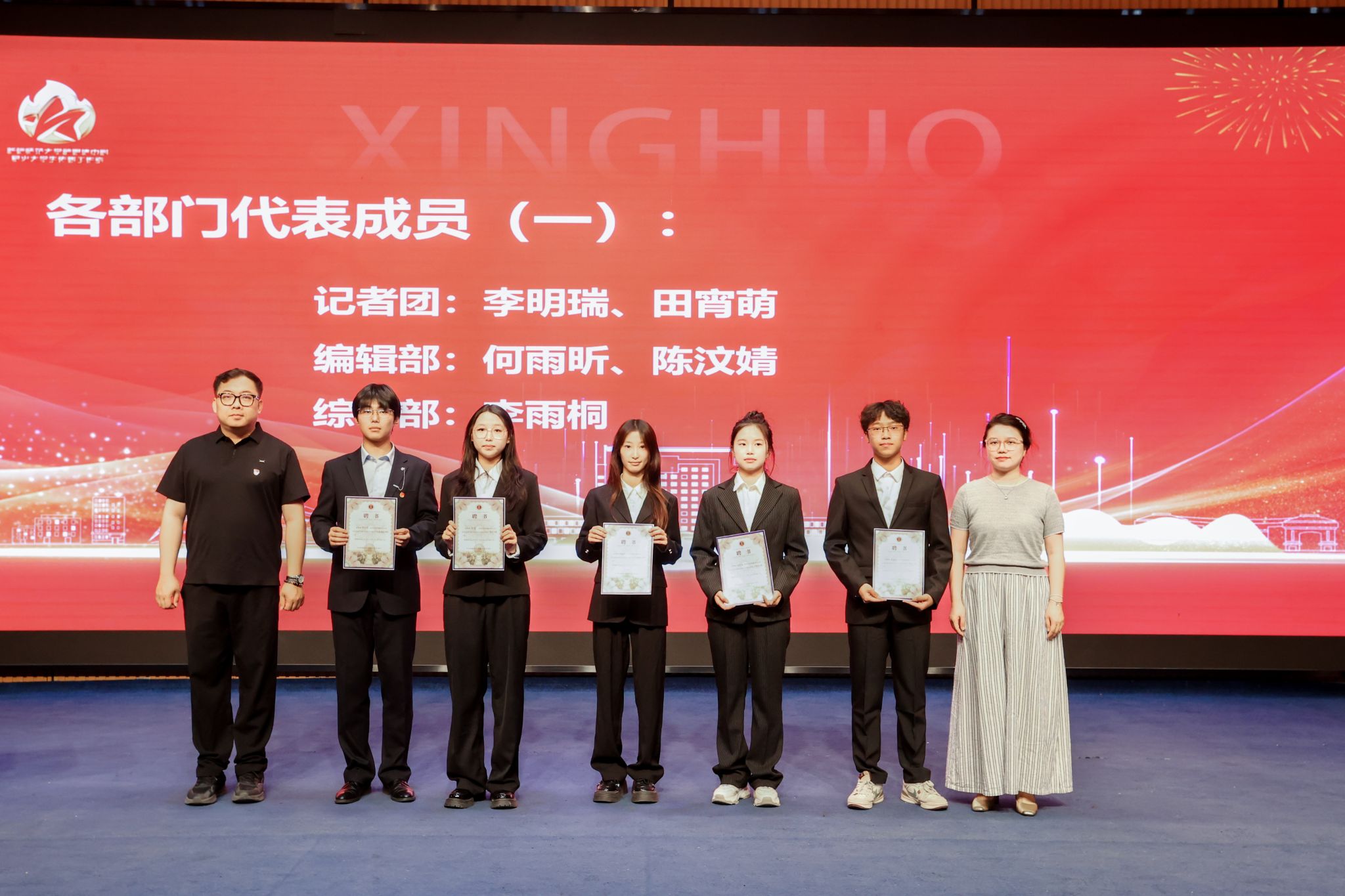 分享发言环节,新当选的负责人代表、综合部部长付旭彤、记者团团长陈鹭、编辑部副部长(微信)何雨昕、编辑部副部长(微博)陈汶婧、温泉广播站站长夏蓉、昆仑广播站站长陈盈盈、视觉部部长鲍盈旭分别登台发言,全面总结各部门工作成绩,介绍下一阶段部门工作计划,并对指导老师和成员们的支持帮助表达了诚挚的谢意。大家纷纷表示,将接过前辈的接力棒,带领团队在内容创作、平台运营、品牌建设等方面开拓创新,不断践行传媒人的初心,让“星火”之光接续闪耀在新师校园。