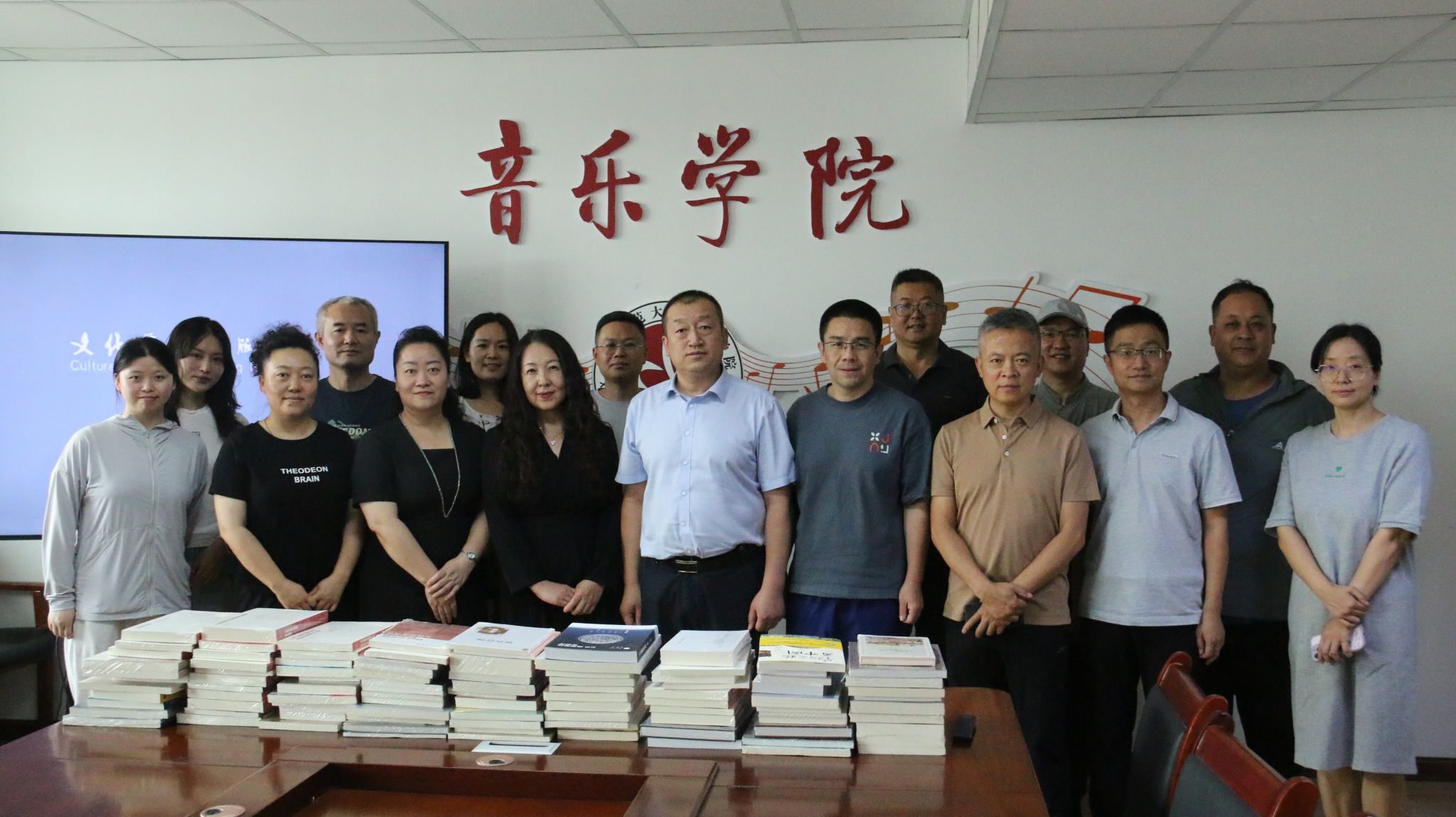 会上,杨志刚与斯日古楞进行了图书捐赠仪式。杨志刚代表永利官网音乐学院感谢文化艺术出版社的支持与帮助,他表示期望文化艺术出版社能持续深化与新疆高校的合作,以文化为笔、以书籍为墨,携手同心,共同书写绚丽多彩的中国故事,为推进文化润疆工作,铸牢中华民族共同体意识贡献坚实力量。