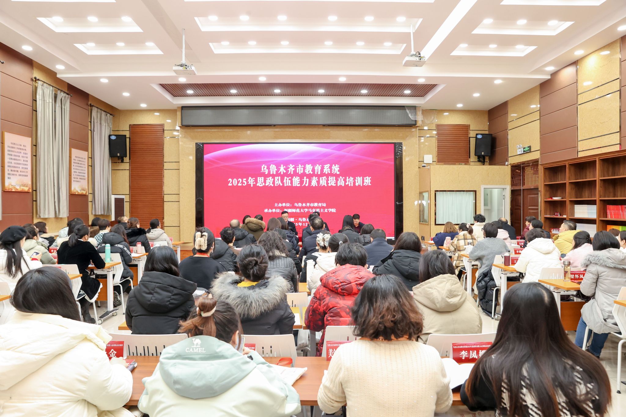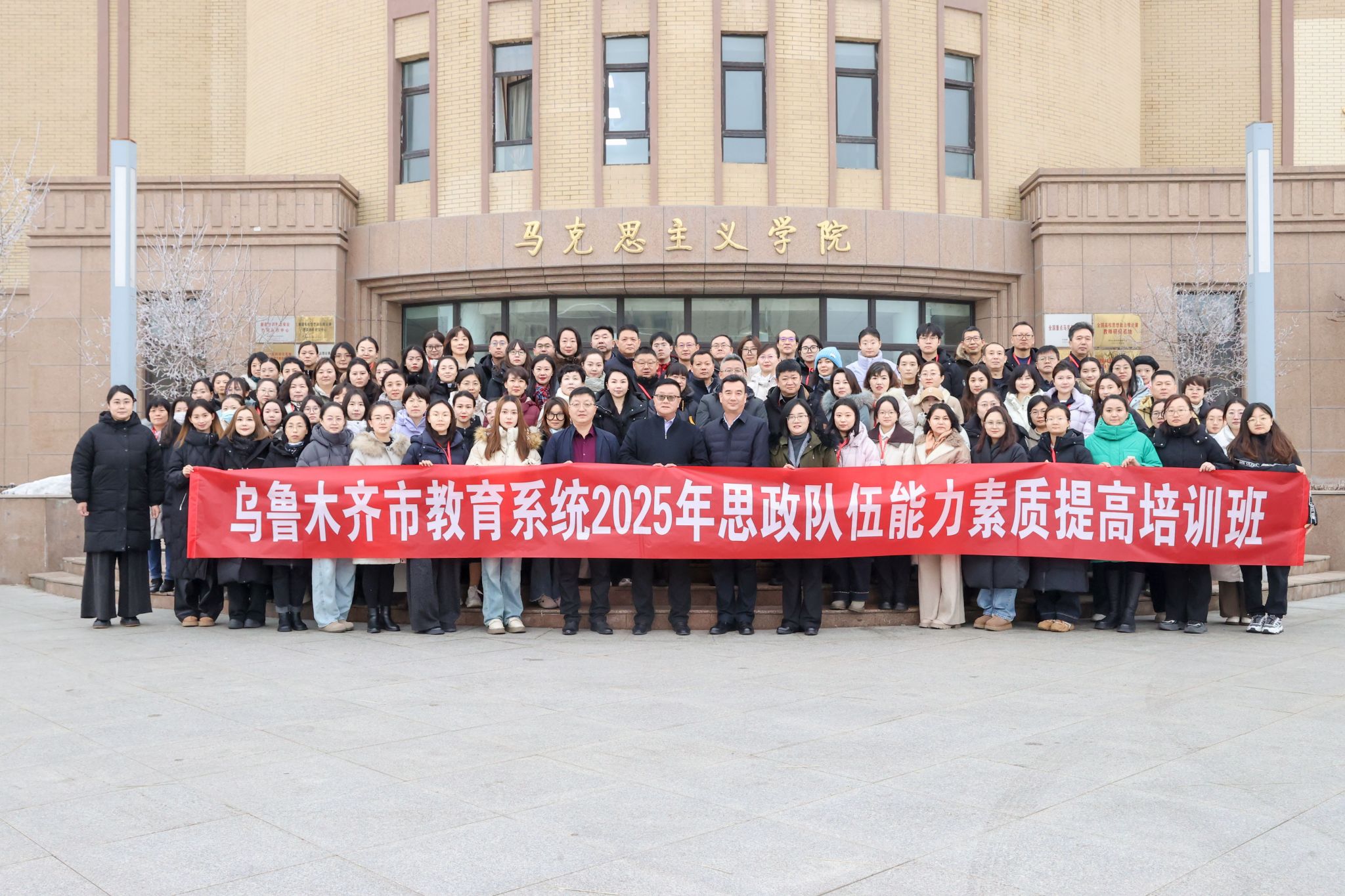 为深入贯彻落实习近平总书记关于思政课建设的重要论述,切实提升乌鲁木齐市中小学思政课教师队伍专业素养和教学能力,筑牢校园思政育人根基,12月8日至12日,由乌鲁木齐市教育局主办、永利官网马克思主义学院承办的乌鲁木齐市教育系统2025年思政队伍能力素质提高培训班在温泉校区顺利举行。来自全市各区县中小学的100名一线思政课教师齐聚校园,完成了为期5天的集中培训并顺利结业。