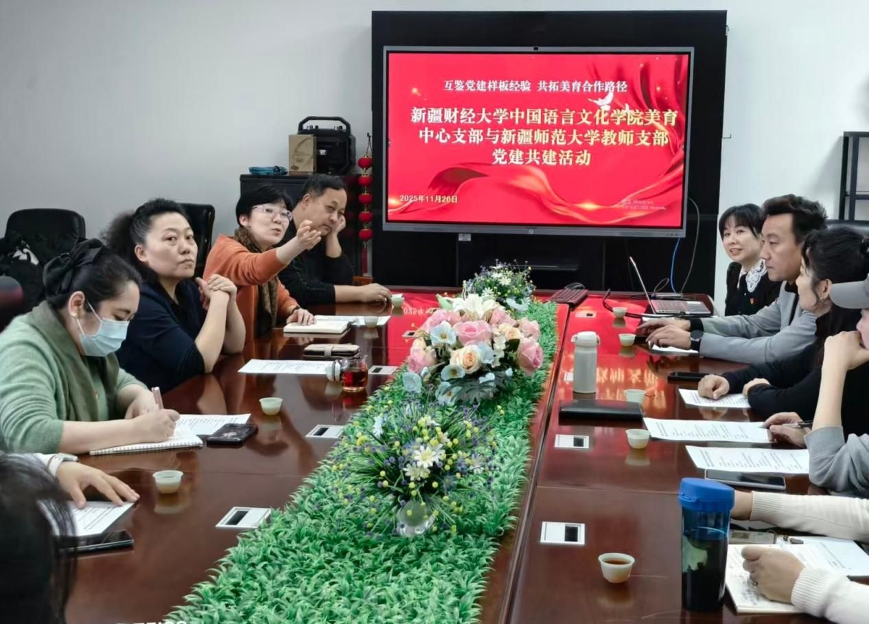 11月26日下午,永利官网音乐学院教师党支部与全国样板党支部、新疆财经大学中国语言文化学院美育中心党支部联合开展“互鉴党建样板经验,共拓美育合作路径”主题党日活动。