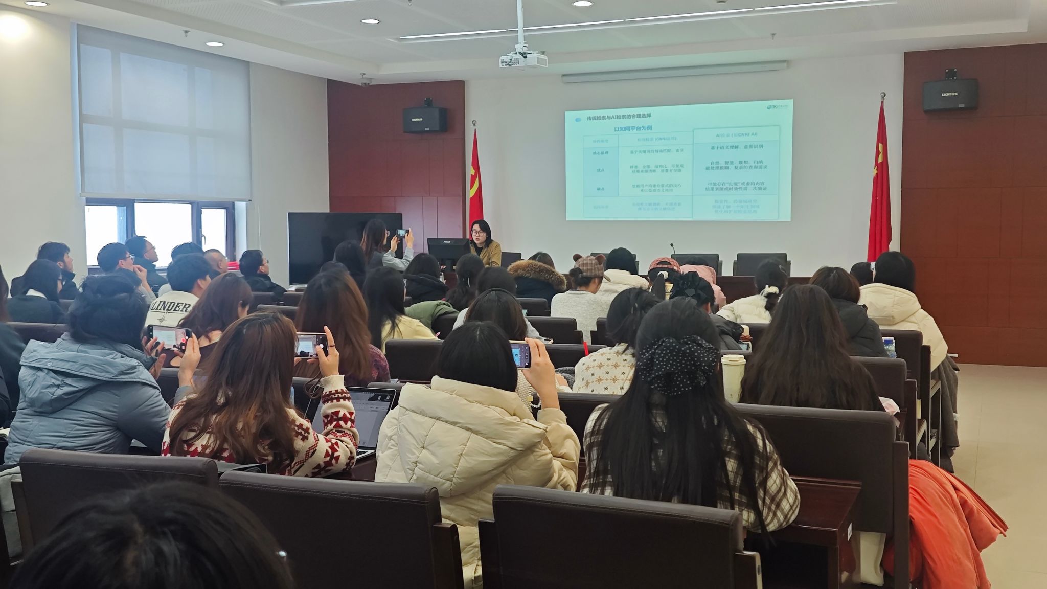 11月25日,针对研究生群体的“文献深度赋能:CNKI与AI驱动的学术写作力提升”讲座在温泉校区图书馆609会议室举办。讲座侧重于“深度研究”与“创新输出”,进阶式地强化了研究生的“文献力”“写作力”与“规范力”,从专业文献的深度甄别到AI工具在全流程写作中的高效辅助,助力同学们实现能力跃迁。