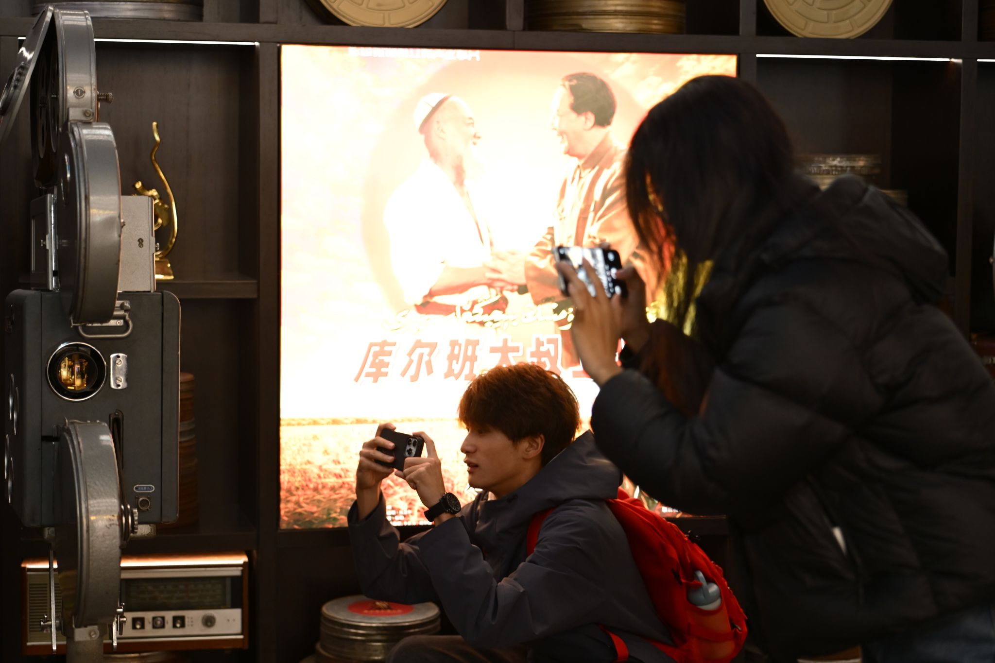 活动中,师生们循着历史脉络驻足参观。从自治区成立时的珍贵历史视频、十月拖拉机厂生产的第一台“跃进”牌拖拉机,到天山百货大楼的复原场景,老物件与旧影像勾起了大家对峥嵘岁月的追忆,深刻体会到老一辈建设者扎根边疆、艰苦奋斗的精神品格;从打赢脱贫攻坚战的新旧对比照片、柯柯牙生态治理卫星图,到果子沟大桥模型,鲜活的展品直观展现了新疆在经济发展、民生改善、生态文明建设等领域的历史性成就,让师生们真切感受到“中华民族共同体意识”在天山南北的生动实践。