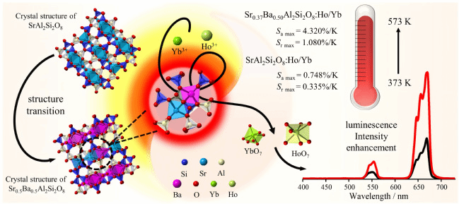该论文系统地研究了长石结构荧光粉的上转换发光性质及温度传感特性,通过阳离子取代策略有效调控锶长石基质材料,实现发光强度增强以及基于非热耦合荧光强度比技术测温灵敏度的提升,为光学温度测量应用提供一定参考价值。