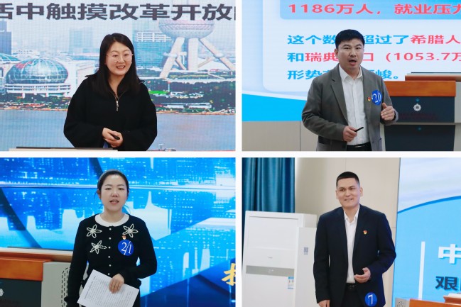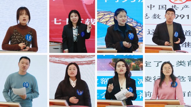 赛前,马克思主义学院围绕2024年教育部“形势与政策”教学要点,确定了“中国式现代化”“铸牢中华民族共同体意识”等方向性选题,为每位参赛教师配备了专职思政课教师担任指导教师,形成了马克思主义学院教师与各参赛选手组成的“1+1”备课组,对课程进行了为期一个月的精心打磨。最终,参赛选手以“七十五载迎盛世 奋勇争做‘追星人’”“动荡的世界:呼唤大国协调合作”等授课主题,在现场进行试讲授课。比赛现场气氛热烈,选手们灵活运用多元教学方法精准阐释课程内容,特别是各学院辅导员能够紧密结合自身学院学情和专业特点进行个性化授课。