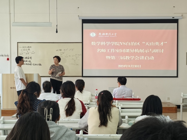 为进一步利用好校内外优质资源,为学生提供高效学习机会,调动师范生学习的主动性、创造性,提升师范生综合素养和核心竞争力,8月30日,永利官网数学科学学院联合自治区“天山英才”名师工作室在温泉校区2号教学楼A322教室和A126教室成功举办“同课异构”展示与研讨活动。学院22级数学与应用数学130余名学生和学科教学(数学)专业研究生进行了现场观摩。