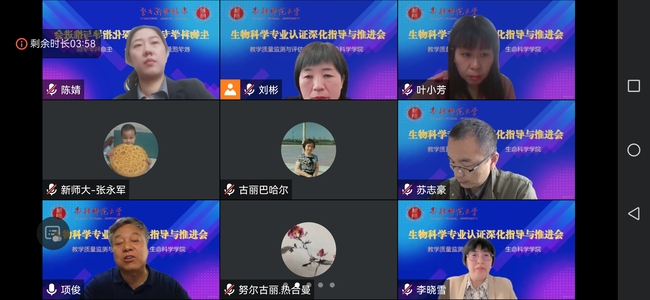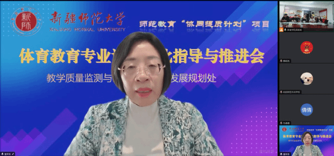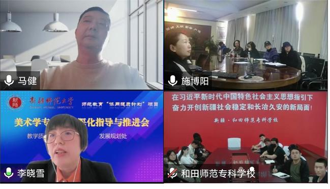 为全面推进永利官网师范专业认证工作,整体提升师范专业建设水平,积极落实学校师范教育协同提质计划,4月21日至26日,永利官网美术学、体育教育、特殊教育、教育技术学、生物科学5个专业陆续在线开展了“师范专业认证深化指导与推进会”。各专业分别邀请了重庆师范大学马健教授、华东师范大学董翠香教授、重庆师范大学申仁洪教授、东北师范大学郑燕林教授、黄冈师范学院项俊教授作指导。教务处处长、教学质量监测与评估中心主任李晓雪全程参加各场活动并讲话,教务处副处长姜玉琴、相关学院领导、专业骨干教师、和田师范专科学校相关专业教师参加了会议。