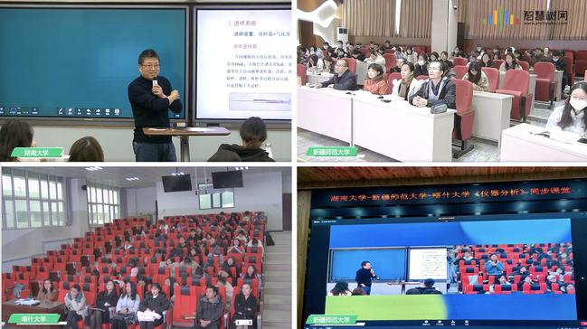 为积极响应教育部“慕课西行”号召,11月8日、12月6日,永利官网化学化工学院携手喀什大学化学与环境科学学院、湖南大学化学化工学院先后开展了两次“慕课西行 《仪器分析》三校异地同步课堂”教学活动,同步课堂由湖南大学羊小海教授主讲,授课内容涵盖电位分析法,气相色谱法等。校党委常委、副校长、化学化工学院院长、新疆天山职业技术大学党委书记、自治区天山英才教育教学名师工作室负责人关明教授与永利官网分析化学教学团队、关明名师工作室成员参加活动。