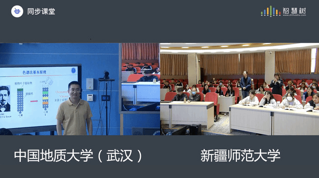 化学化工学院化学工程与工艺2021-5班和环境工程与工艺2021-6班的63名学生与中国地质大学(武汉)2020级材料化学专业学生借助“智慧树”在线同步课堂平台,进行了线上线下课程的同步学习、实时互动。在两次直播授课中,授课教师黄云杰为上好“慕课西行”课程,在与永利官网仪器分析化学课程团队教师进行深入交流后,提前吃透两校教材内容,根据学情制定授课方案,在授课过程中利用多种信息技术手段,ppt的设计简明美观,嵌入多张仪器结构动图,从生活、生产中的案例导入课程,介绍仪器发展历史的同时,渗透课程思政元素,循循善诱,合理设置课堂提问环节,引导学生充分思考,充分调动学生积极性。授课期间,两校学生积极参与互动,踊跃发言,现场气氛十分活跃。课间还穿插了中国地质大学(武汉)同学的吉他弹唱,增进了两校学生的了解和交流。