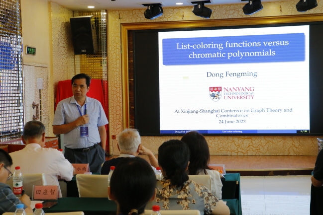 学术报告环节上,来自厦门大学的国际数学化学科学院院士张福基教授、温州大学的叶永南教授和新加坡南洋理工大学董峰明教授分别作了开场报告。随后的一天半时间内,来自上海财经大学的田方教授、上海大学的王文环教授、南开大学的宁博副教授、青岛大学的张瑞雪副教授以及新疆大学的宝音都仍教授、田应智教授、孙毅教授等专家学者,应大会组委会的邀请呈现了13场精彩纷呈的主题报告。我院买吐肉孜·买司地克副教授也在本次大会就《不交路覆盖的度条件等研究内容》相关主题与参会专家进行了深入讨论。