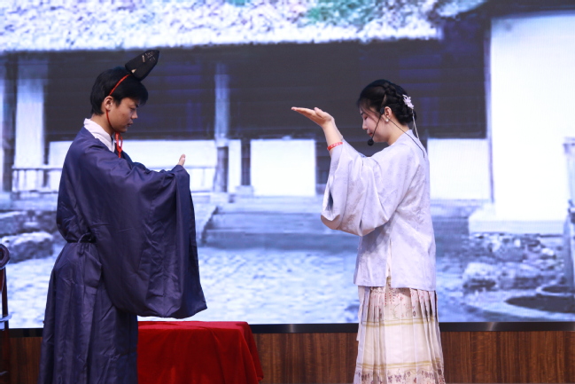 《国学文化》课旨在充分弘扬中国古代优秀传统文化,使学生在学习和演绎中感受中国古典文化的智慧与礼仪,是传统文化在新时代的继承和发扬。本学期共9周、18课时的美育通识课注重学生的参与体验,是中国语言文学学院在创新培养模式改革、创新实践类课程架构、形成“理论+实践”联动机制的重要实践,是不断深化课程评价机制、建设专业持续改进机制的重要探索。