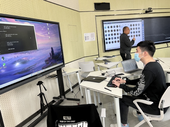培训过程中,计算机科学与技术学院教授栾静分享了她在智慧教室使用中的一些独特做法,包括远程调配个人计算机、在智慧教室中合理使用教学环境、使用手指实现粉笔功能等。
