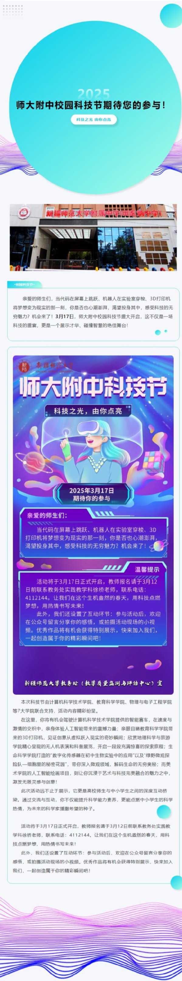 科技之光,由你点亮—— 师大附中校园科技节期待您的参与!