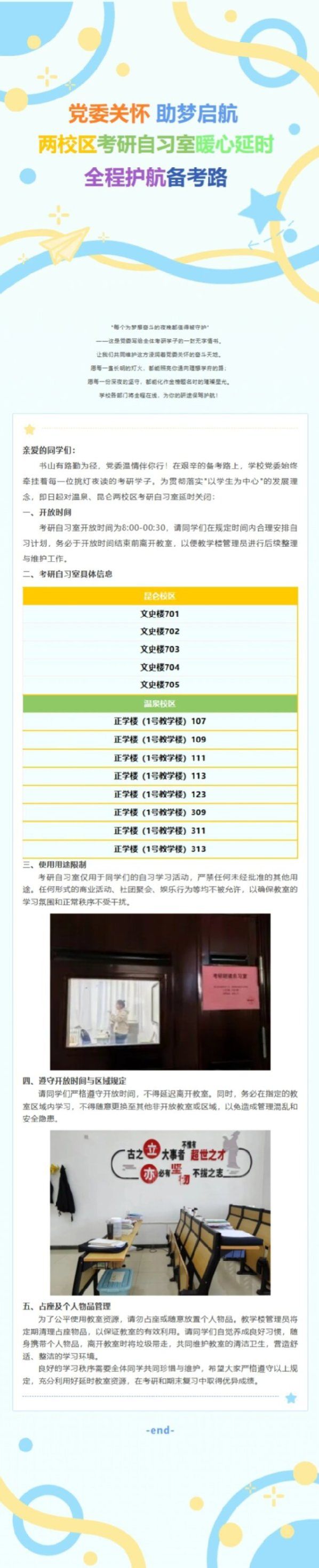 党委关怀 逐梦启航 | 两校区考研自习室暖心延时,全程护航备考路