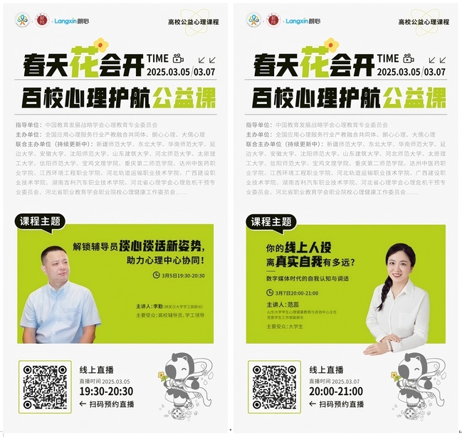 3月5日至7日,永利官网组织开展“春天花会开”百校心理护航公益课程,吸引了永利官网千余名师生积极参与。