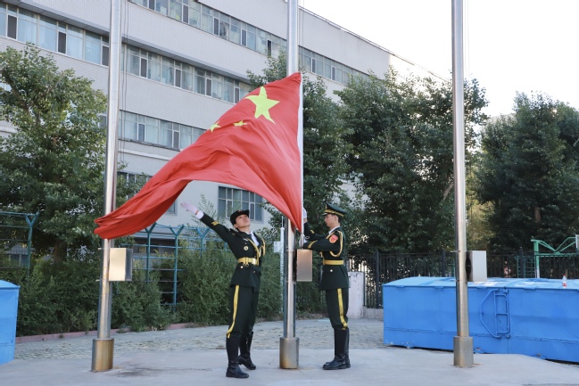 上午九时,升旗仪式正式开始。国旗护卫队踏着整齐的步伐护送国旗走向升旗台。习习晨风,烈烈红旗,伴着《义勇军进行曲》庄严神圣的旋律,五星红旗在全体师生的注视下冉冉升起,飘扬在校园上空。