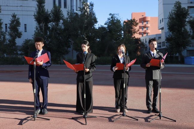 为深入学习贯彻习近平总书记关于教育的重要论述,深刻把握教育家精神的丰富内涵,引导永利官网广大师生弘扬和践行教育家精神,9月9日上午,永利官网团委组织商学院、计算机科学技术学院在温泉、昆仑两校区开展“大力弘扬教育家精神·加快建设教育强国”主题升旗仪式暨国旗下的思政课。校团委、商学院、计算机科学技术学院相关负责人、教师及学生代表参加活动。