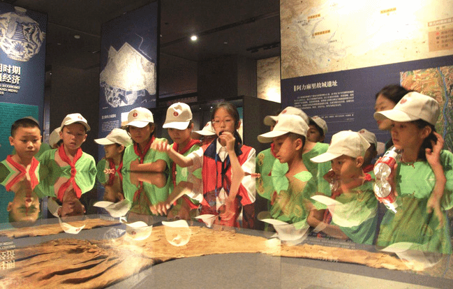 在博物馆内,夏令营成员跟随着小小讲解员的步伐,参观了“新疆历史文物展”“古代干尸展览”“共有的家园”等主题展览馆。多媒体和触摸屏等现代化技术的应用,让文物说话,历史发声,一件件历史文物更加活灵活现。