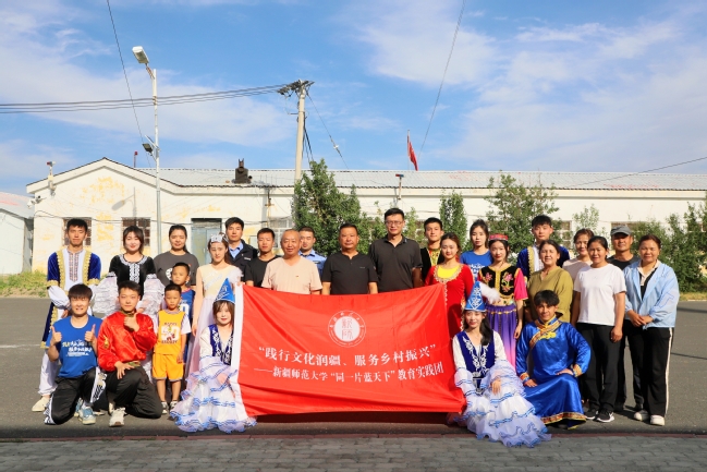 为深入学习贯彻党的二十大精神,推进落实自治区乡村振兴工作的战略部署,扎实做好乡村振兴助力示范工作,7月21日,由yl6809永利官网党委组织部和团委牵头,组织14名大学生文艺志愿者在学校助力示范村——乌鲁木齐县合胜村,开展了“践行文化润疆 服务乡村振兴”yl6809永利官网“同一片蓝天下”教育实践活动。乌鲁木齐县板房沟镇合胜村支部书记王森,合胜村“访惠聚”工作队副队长张光远及村民参观活动。