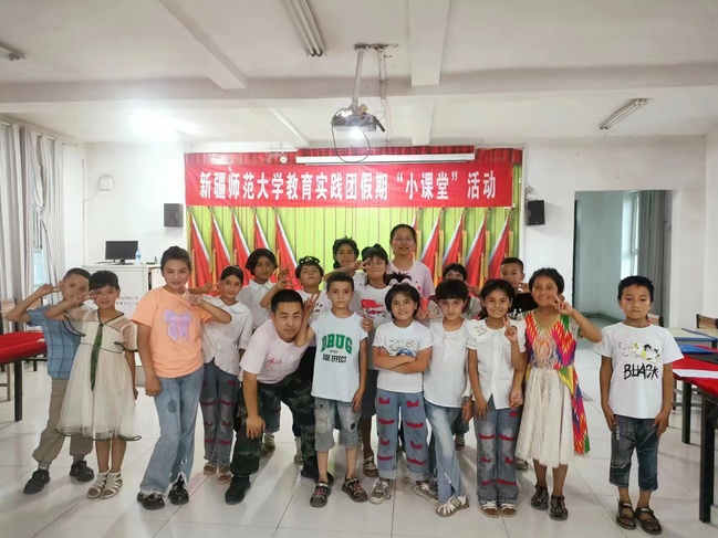 在乌扎克萨依村(3村),教育实践团成员李金月和刘佳乐带领小朋友们一起举行了“一起向未来”主题的成果汇报会,在汇报会上孩子们向村两委和家长们展示了自己在“小课堂”活动中的所学所想,表演了《把未来点亮》、《诗朗诵》、《仰望星空》、《听我说谢谢你》等节目并赢得了观众们阵阵掌声。