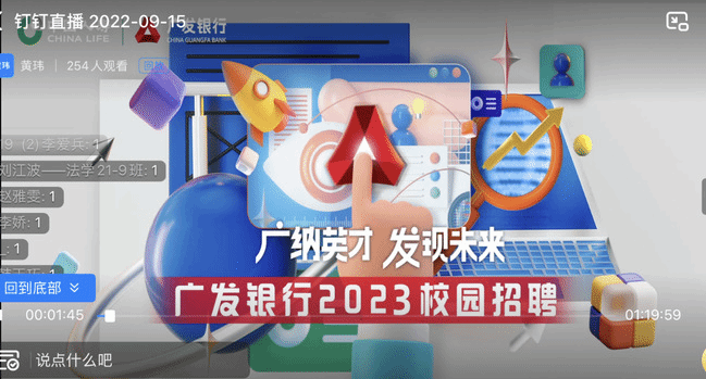 为全力做好永利官网2023届毕业生秋季招聘会、宣讲会等各类招聘活动,为毕业生与用人单位建立招聘对接通道,学生就业指导办公室于9月14日采取钉钉线上直播方式,组织开展了首场银行类秋季校园专场宣讲会。