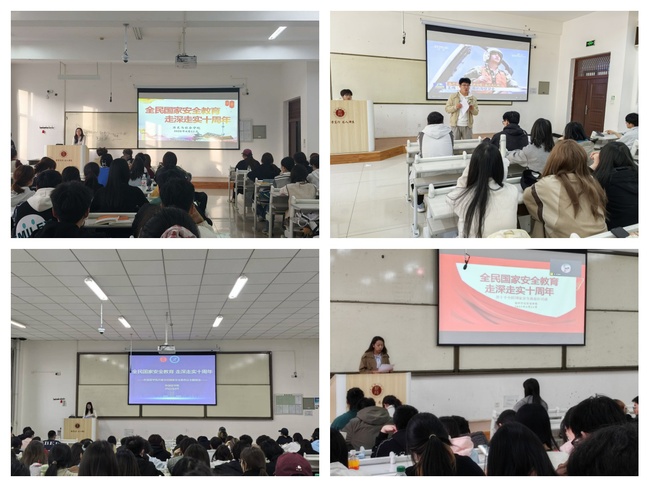 班会中,各学院结合《中华人民共和国国家安全法》向全体学生普及全民国家安全教育日、国家安全等相关知识,并组织学生观看教育部指导推出的《千万师生同上一堂国家安全教育课》直播课等视频公开课,认真学习有关国家安全的各类警示案例,增强了学生的国家安全意识,不断凝聚“强国有我、不负韶华”的正能量。