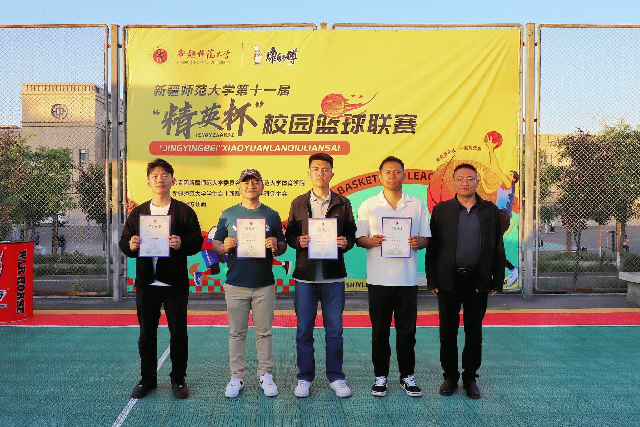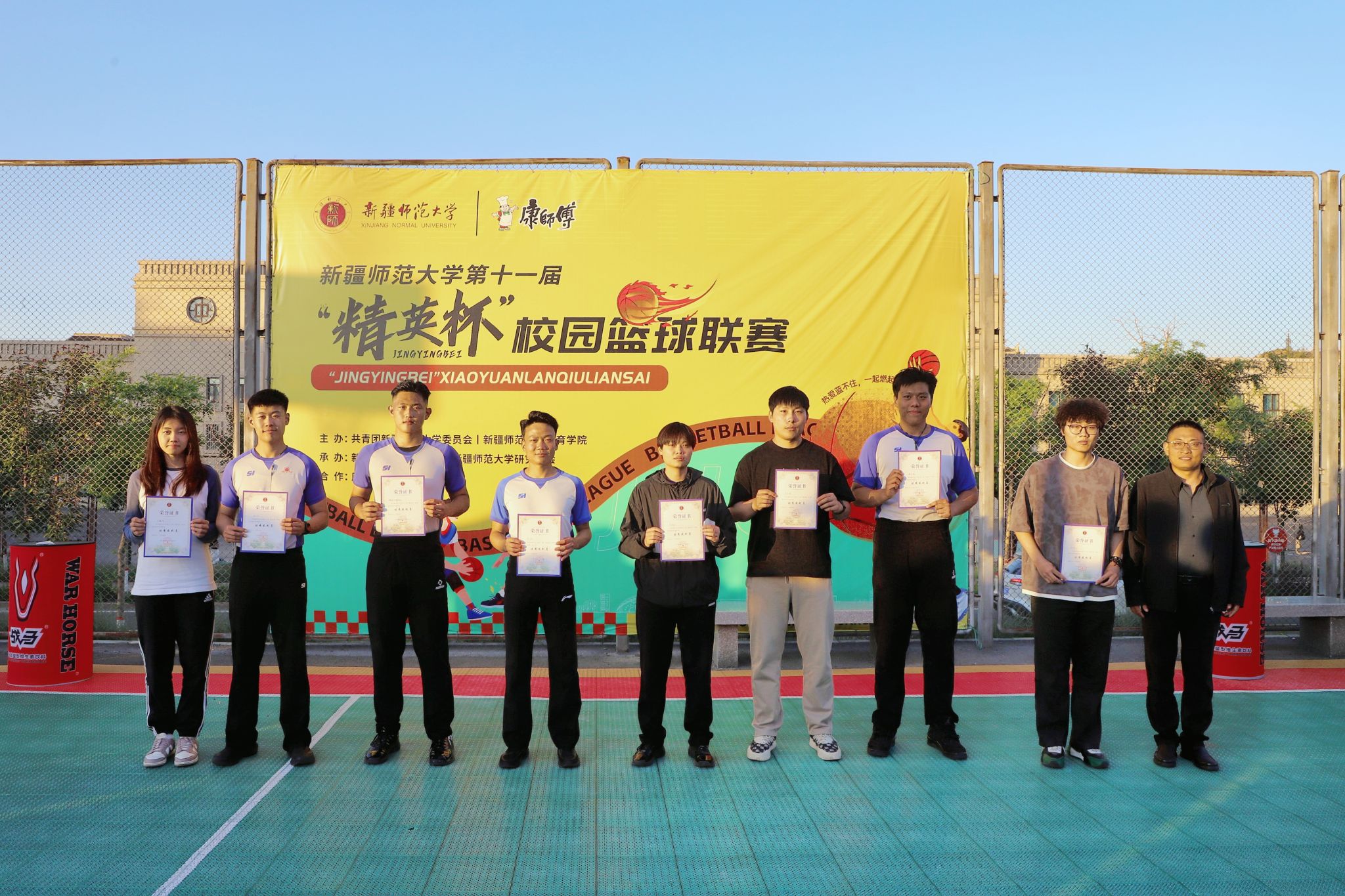 经过激烈角逐,终场哨声响起。最终地理科学与旅游学院篮球队凭借出色发挥,勇夺第十一届“精英杯”校园男子篮球联赛冠军,刘一恒获“最有价值球员”;商学院、数学科学学院和物理与电子工程学院分获亚军、季军及殿军;商学院、地理科学与旅游学院、数学科学学院、物理与电子工程学院、计算机科学技术学院、中国语言文学学院、生命科学学院、国际文化交流学院、历史与社会学院等获“优秀组织奖”;体育学院获“突出贡献奖”;商学院获“最佳人气团队”;马鑫悦、杨丁宇、贾德拉·艾地里别克、陈忆斐、陈硕、李天亮、任俊达、李安娜等获“优秀裁判员”;赛福丁·哈德尔、买合木提·买卖提、木力扎提·马合木提、韩林等获“优秀领队”;张泽昊、康锦耀、长寿、阿特尔等获“优秀教练员”。