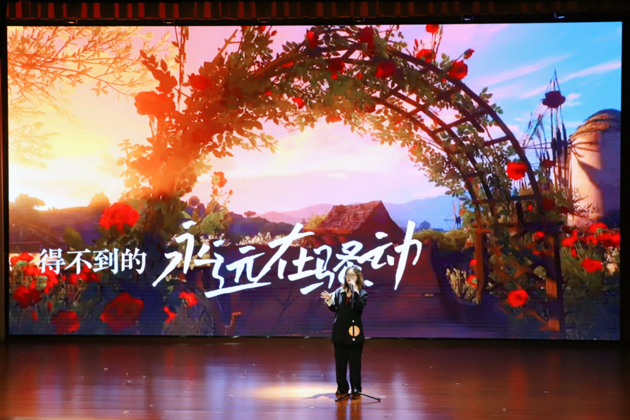 外国语学院玛依拉·买合卖提演唱歌曲《永不失联的爱》