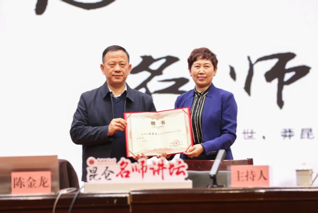 讲座开始前,孙秀玲教授代表学校向陈金龙教授颁发新疆师范大学客座教授聘书。