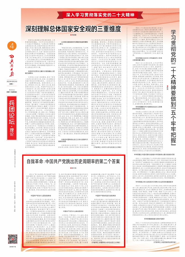 历史上“其亡也忽焉,其兴也勃焉”的周期性难题,是人类政治史上的“哥德巴赫猜想”。习近平总书记在党的二十大报告中指出:“经过不懈努力,党找到了自我革命这一跳出治乱兴衰历史周期率的第二个答案,确保党永远不变质、不变色、不变味。”这一话语深刻揭示了百年马克思主义大党风华正茂的基因密码,体现了中国共产党以史为鉴、踔厉奋发、开创未来的历史自觉和实践自觉。