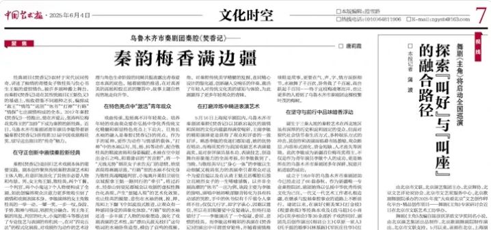 成立于1959年的乌鲁木齐市秦剧团如今已经走过了66载春秋。作为新疆唯一专业秦腔院团,剧团始终以弘扬中华优秀传统文化为己任,一代又一代艺术工作者扎根边疆,在继承与发展秦腔事业的道路上不断前行。建团以来,在演好《铡美案》《打金枝》《程婴救孤》等经典本戏及《战马超》《小商河》《花亭相会》等30余部折子戏的同时,剧团先后创作演出《细君公主》《草原一家人》《托乎提的婚事》《林基路》《军医庄仕华》《红山塔下》等一大批反映中华民族多元一体文化、新疆历史与时代风貌、各民族团结奋进的优秀作品,把秦腔的魅力传播于天山南北,更播撒向丝绸之路沿线国家。近年来,秦剧团更是以铸牢中华民族共同体意识为主线,深入推进“文化润疆”工程,通过扎实推进剧目创作与创新、大力开展戏曲惠民演出活动等方式,为丰富各民族群众精神文化生活贡献了积极力量。乌鲁木齐市秦剧团在获得各民族群众口碑和各级各类荣誉的同时,也培养了李敏、王婷、和妮娜等秦腔艺术的传播者和守梦人。(作者:唐莉霞)