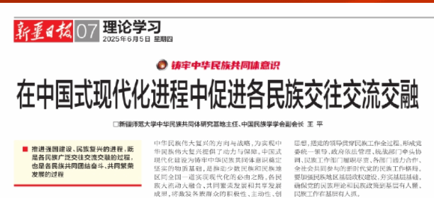 中国式现代化既有各国现代化的共同特征,更有基于自己国情的鲜明特色,是实现中华民族伟大复兴的必然选择。习近平总书记指出,“中华民族大团结是以中国式现代化全面推进中华民族伟大复兴的前提和基础,强国建设、民族复兴的进程,必然是各民族广泛交往交流交融的过程,必然是各民族共同团结奋斗、共同繁荣发展的过程。”这一重要论述从对历史规律和宏伟目标的深刻把握中,科学阐明了中国式现代化建设与各民族广泛交往交流交融的内在联系。