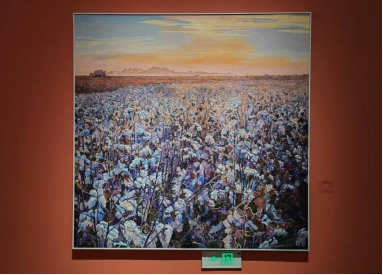 油画为镜,照见山河锦绣;丹青作笔,书写时代华章。这场展览以136幅作品为经纬,编织出新疆70年发展的壮阔图景——从边疆热土到文明枢纽的蜕变,从多元共生的文化生态到绿色发展的生态智慧,每一笔色彩都是对铸牢中华民族共同体意识的生动实践。当艺术家以油彩解构历史、定格当下、畅想未来时,他们不仅绘制着天山南北的斑斓画卷,更是以艺术之力构筑起中华文化认同的精神坐标。在新时代的发展进程中,新疆正以开放包容的姿态,将千年丝路文脉转化为当代文明对话的密码,让艺术成为民族团结的连心桥、生态文明的启示录、高质量发展的宣言书。(作者:李宁轩)