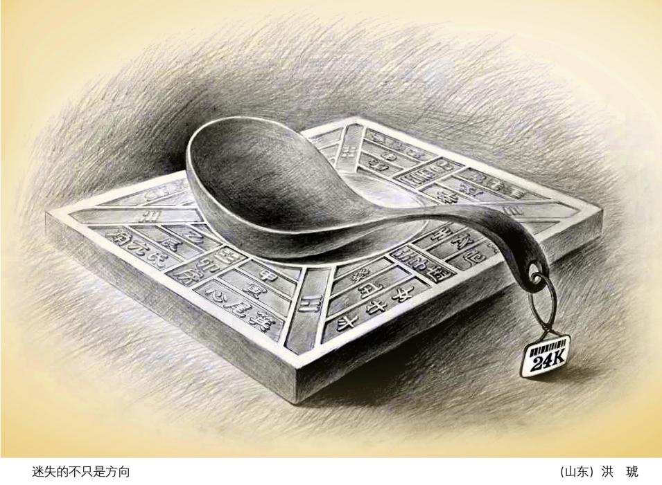 踏入展厅,一幅幅巧妙构思和形式活泼的漫画有力地诉说着“清风扬正气 廉洁守初心”的故事。沈天呈(上海)的作品《——咦,那不就是你嘛?》中,一边是屏幕刻意包装的正在宣讲“廉政清明”的官员形象,一边是私下里在 KTV 里纸醉金迷、放纵享乐的场景。人物的对应关系用一句“咦,那不就是你嘛?”直接戳破了表面的伪装,精准讽刺了那些台上台下表里不一、阳奉阴违、背离廉政要求的官员。结合中央八项规定来看,这类公款享乐、言行相悖的行为,正是当前严厉整治的对象。作品以强烈的对比手法,真实批判官场“两面人”,一针见血,一目了然。这就是漫画艺术直击人心的力量。此次漫画展的作品紧紧围绕党风廉政这一鲜明主题,实现了艺术性与内容的有机融合。漫画的线条、色彩、构图,鲜明而生动的构成党风廉政这一严肃主题的因子。如洪琥(山东)的素描作品《迷失的不只是方向》,运用司南的形象,在勺子的尾端系上“24K”纯金的标识,使司南在“金钱”的“拖累”下失去了指明方向的功能,暗喻被金钱腐蚀而迷失初心的官员。黑白灰的色调,配以略显杂乱的排线,营造出压抑的氛围,传递了腐败的危害。而正是漫画不拘泥的艺术创作形式,将各种服务于主题的创作手法信手拈来,以漫画形成的视觉冲击,让原本严肃的廉政教育内容变得更加鲜活、有吸引力。