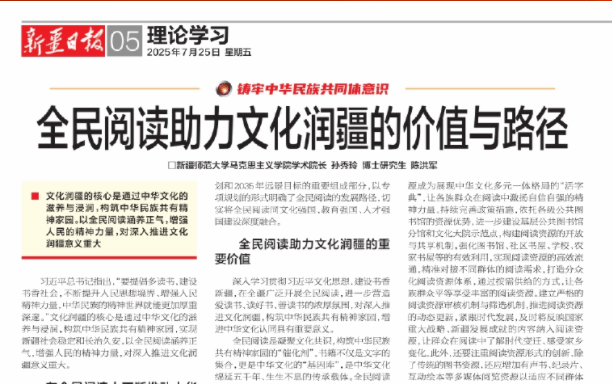 文化润疆的核心是通过中华文化的滋养与浸润,构筑中华民族共有精神家园。以全民阅读涵养正气,增强人民的精神力量,对深入推进文化润疆意义重大