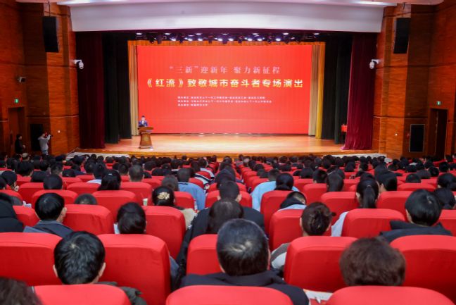 1月3日,由自治区关工委、自治区总工会、自治区工商联主办,乌鲁木齐市关工委、昌吉州关工委协办,永利官网承办的“‘三新’迎新年 聚力新征程——《红流》致敬城市奋斗者”专场演出在温泉校区昆仑讲堂举行,永利官网原创红色校史剧《红流》再度上演,弘扬爱国奋斗精神,为新时代建设增添精神动力。