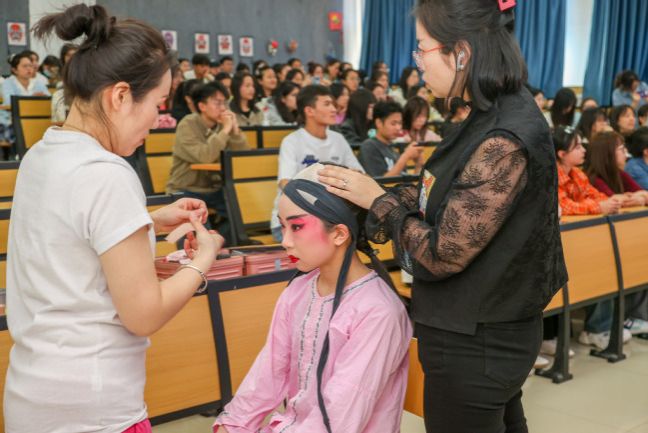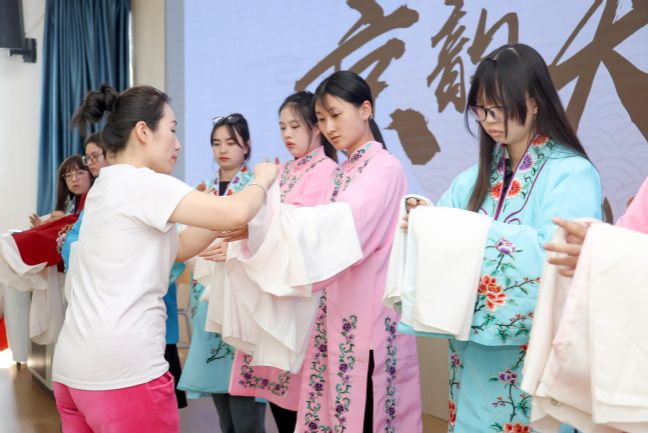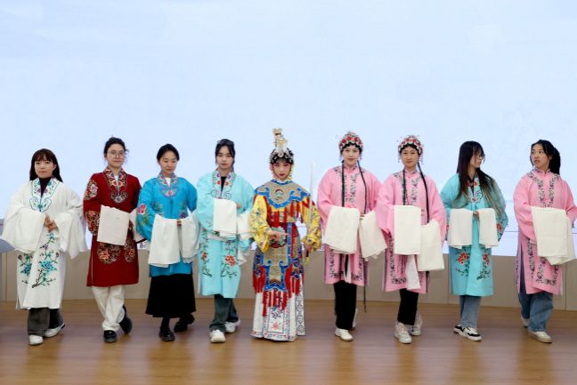 为使广大师生近距离感受京剧艺术魅力,进一步传承和弘扬中华优秀传统文化,4月22日下午,永利官网铸牢中华民族共同体意识教育实践基地(美育浸润基地)在笃学楼开展了第二课堂美育实践活动——“京韵时光”国粹京剧体验活动,永利官网100余名学生通过第二课堂参与了体验活动。