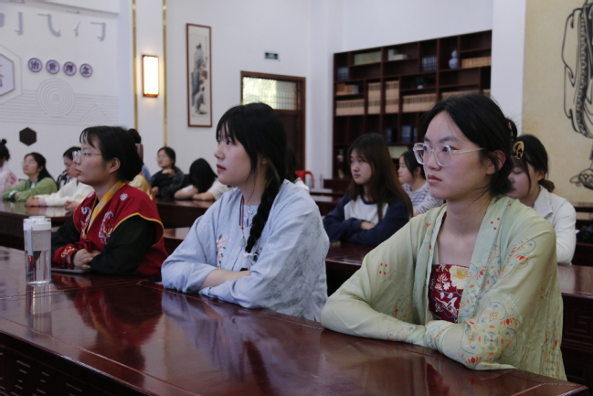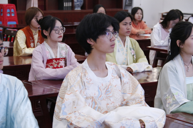 本次中华传统服饰文化国学体验课系永利官网第二课堂美育体验课程系列之一。体验课围绕中华诗词典故与服饰文化展开,由中国语言文学学院古代文学教研室主任李梅主讲,来自各学院30余名学生参与其中。