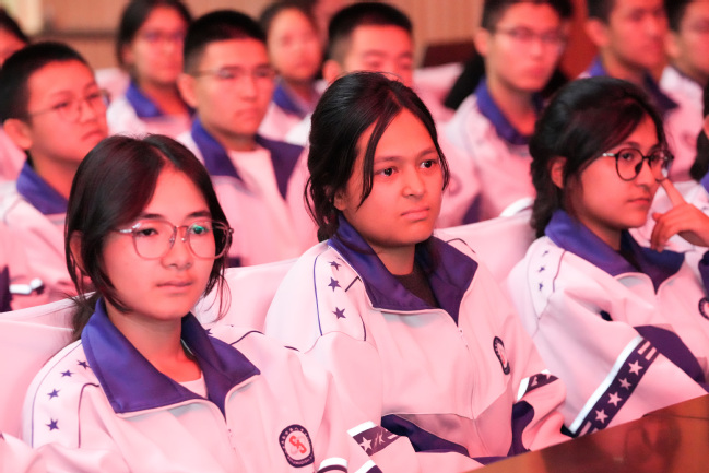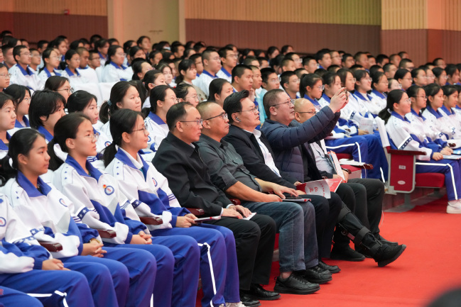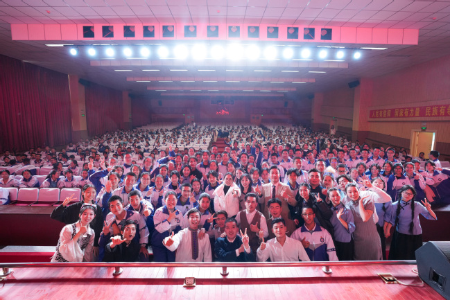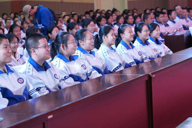 乌鲁木齐第八中学副校长刘卫民、高一年级党支部书记黄民奇,永利官网党委副书记刘俊,党委常委、宣传部部长高靖,党委办公室(学校办公室)副主任、校友会办公室主任闫政远及第八中学师生代表近800人观看演出。