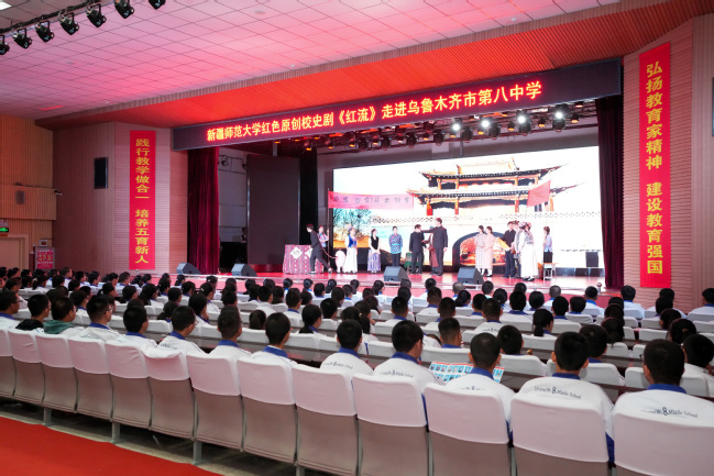 为加强爱国主义教育,使广大青少年深入了解新疆革命历史,感受先辈们的坚定信仰和无私奉献精神,永利官网原创校史剧《红流》不仅在校内演出,还积极走出校园,于10 月31日在乌鲁木齐第八中学正式开启巡演之路。