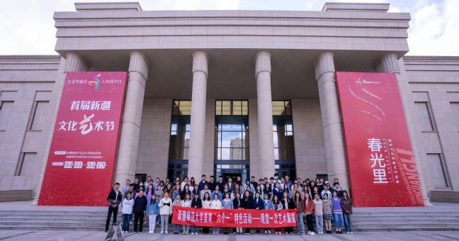 此次组织观看的“春光里——首届新疆文化艺术节新时代优秀美术作品展”由新疆党委宣传部、新疆文化和旅游厅主办,新疆美术馆、新疆画院承办,是首届新疆文化艺术节的重要内容。展览分为“春风”“化雨”两个篇章,共展出中国画、油画、版画、水彩(粉)画、雕塑、综合材料、艺术装置等多种艺术门类美术作品300余幅(件),以新颖的谋篇布局、多维的观察视角,生动描绘新时代大美新疆的自然风光、精神气象。